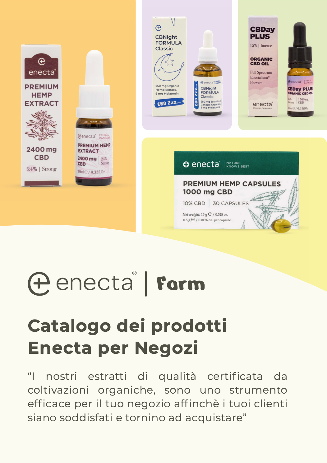 Sempre più rivenditori scelgono Enecta per offrire ai propri clienti prodotti al CBD innovativi, sicuri ed efficaci. Scopri la nostra pagina dedicata ai partner e sfrutta le nostre opportunità di collaborazione! Unisciti alla nostra rete di partner e metti a disposizione dei tuoi clienti i migliori estratti di CBD disponibili sul mercato.