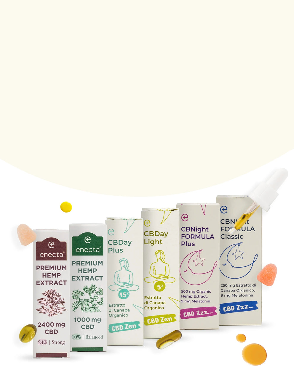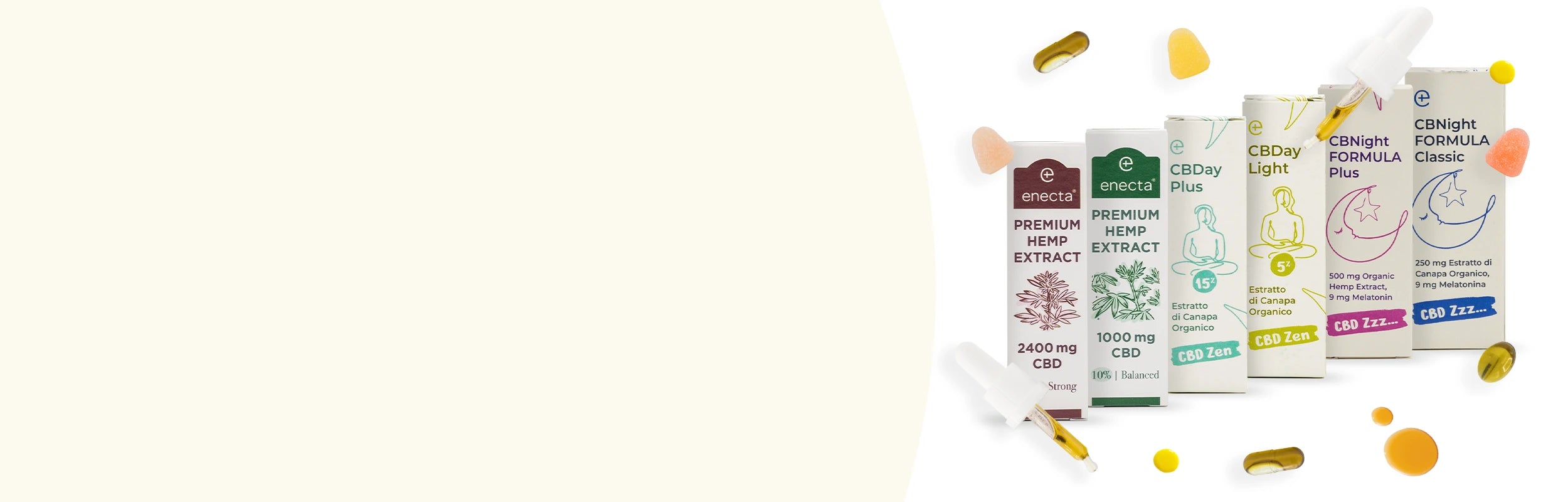 I prodotti Enecta non sono medicinali. Sono ottenuti da varietà di canapa iscritte nel Registro Comune Europeo, nel rispetto dei requisiti previsti dalla Legge 242/2016. I prodotti enecta sono registrati come cosmetici ad uso esterno e non sono destinati all’uso orale o a fini terapeutici.