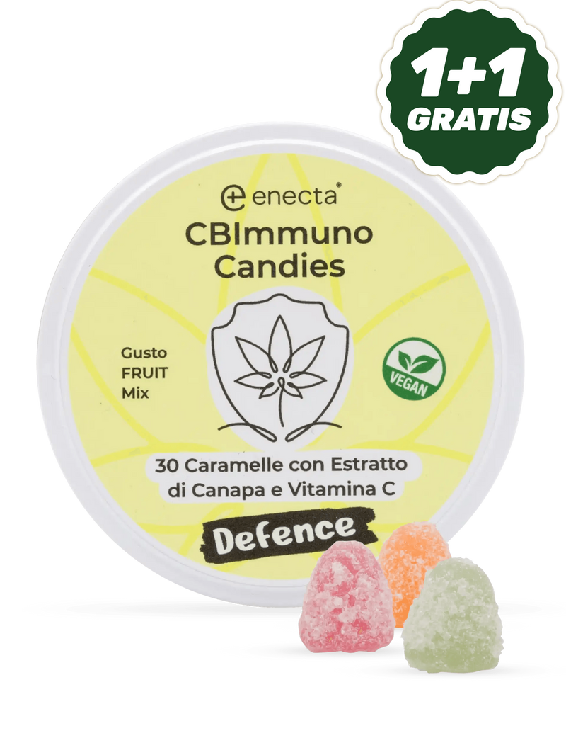 Grazie all’azione combinata di estratto di canapa (CBG) e vitamina C, le caramelle CBImmuno favoriscono il funzionamento del sistema immunitario e sono il supporto ideale per rafforzare le difese immunitarie e affrontare al meglio l'autunno e l’inverno.