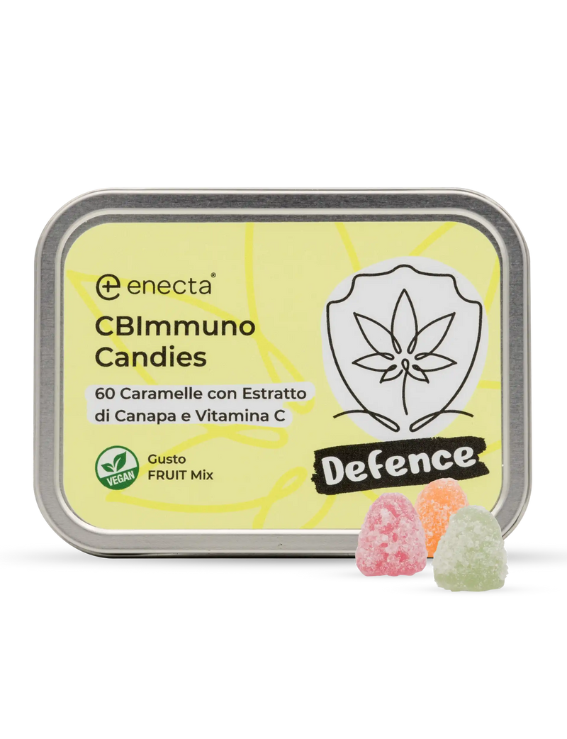 Grazie all’azione combinata di estratto di canapa (CBG) e vitamina C, le caramelle CBImmuno favoriscono il funzionamento del sistema immunitario e sono il supporto ideale per rafforzare le difese immunitarie e affrontare al meglio l'autunno e l’inverno.